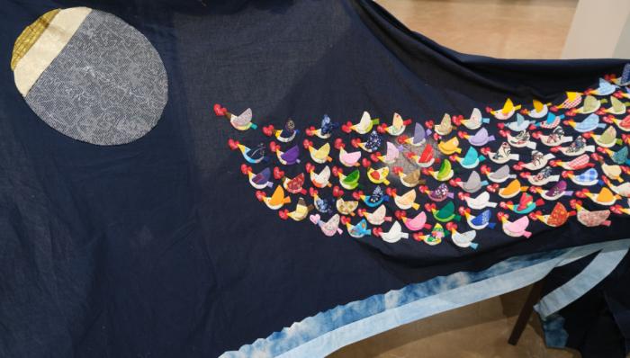 月へ向かうことりの群れが描かれた、巨大なタペストリーとなります。完成目標は1,000羽、長さ14m相当です。