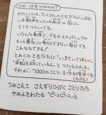 『1000PEACE』は、「戦争は昔話じゃない。現在進行形のリアルだ。お金も、地位もない、無名の自分にできることは何?」と感じた人たちが集まってできた有志団体です。