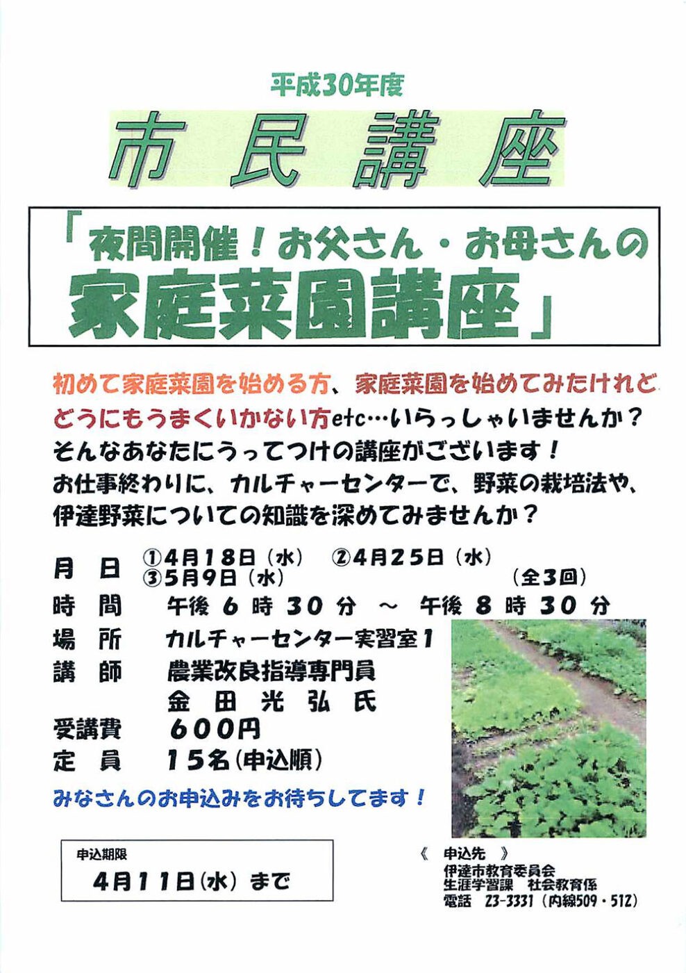今年は夜開催!お父さん・お母さんの家庭菜園講座